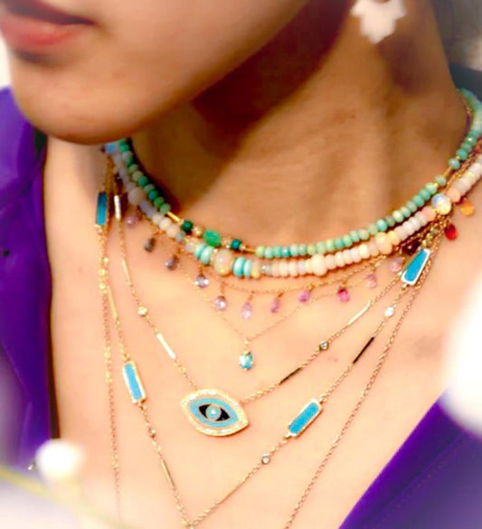 One of a kind Boho- Chic Beaded Candy Gemstone Necklaces! Crafted from pure gemstones, your birthstone necklace sparkles with diamond, Tanzanites and Sapphire.