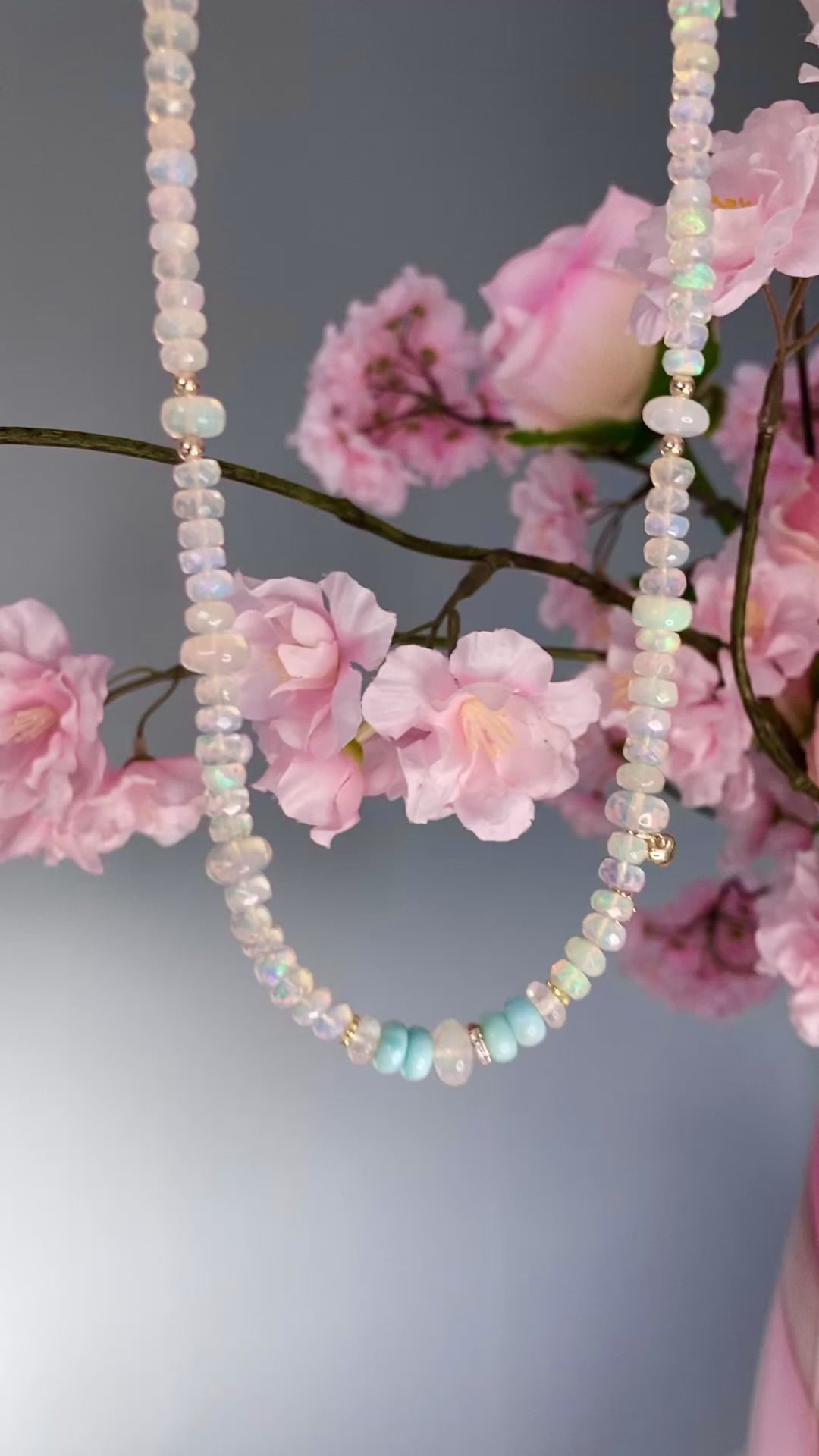 Royal Ethiopian Welo Opal Beaded Necklace with Gold Charms